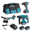 • Multifunktionales drahtloses 3-in-1-Set in praktischer Tasche – drei Werkzeuge in einem Set: Bohrmaschine, Winkelschleifer, Schlagbohrmaschine mit 2 Akkus und schnellem Ladegerät in einer praktischen Tasche für verschiedene Haushaltsaufgaben.