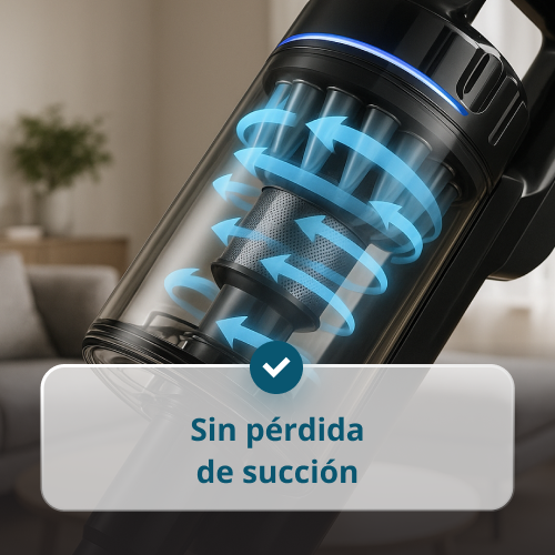 • Sistema multiciclónico – mantiene la potencia de succión incluso cuando el depósito está lleno.