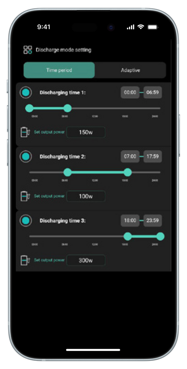 L'appareil peut être contrôlé à distance en utilisant l'application mobile Power Zero - à tout moment, n'importe où, via Internet en temps réel, vous pouvez surveiller et réguler le stockage et la production d'énergie. La gestion de l'énergie vous permet de configurer différentes options pour utiliser le système, en ajustant la sortie d'énergie en fonction de vos besoins.