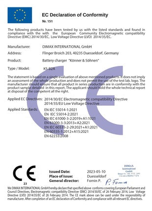 2016-ban a Könner & Söhnen® termékeket az ár-érték arány alapján az „ÉV TERMÉKE” címmel ismerték el. A „Könner & Söhnen®” márka elfoglalta helyét a középkategóriás árkategóriában, magas minőségű, minden európai tanúsítvánnyal rendelkező termékeket kínálva a vásárlóknak megfizethető áron.
