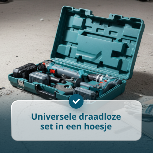 • Universal cordless kit in a case – two tools in one set: an impact drill and an angle grinder with 2 batteries and a charger for various household tasks.