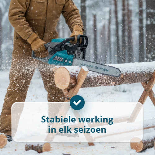 • Eenvoudig en snel starten – het systeem combineert een automatische STOP-knop, handmatige brandstofpomp (primer) en starter met een extra veer, waardoor de kettingzaag altijd klaar is voor gebruik.