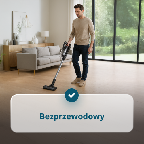 • Bezprzewodowy, stylowy i ergonomiczny – zapewnia maksymalną swobodę ruchu podczas sprzątania.