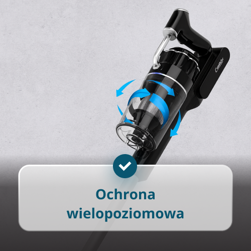 • Dwustopniowy system filtracji zatrzymuje nawet najdrobniejsze cząsteczki kurzu.