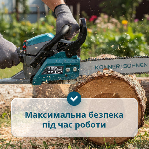 • Maximum safety during work – the inertia chain brake instantly stops the chain in case of kickback, reducing the risk of injury and allowing confident work even under heavy loads.
